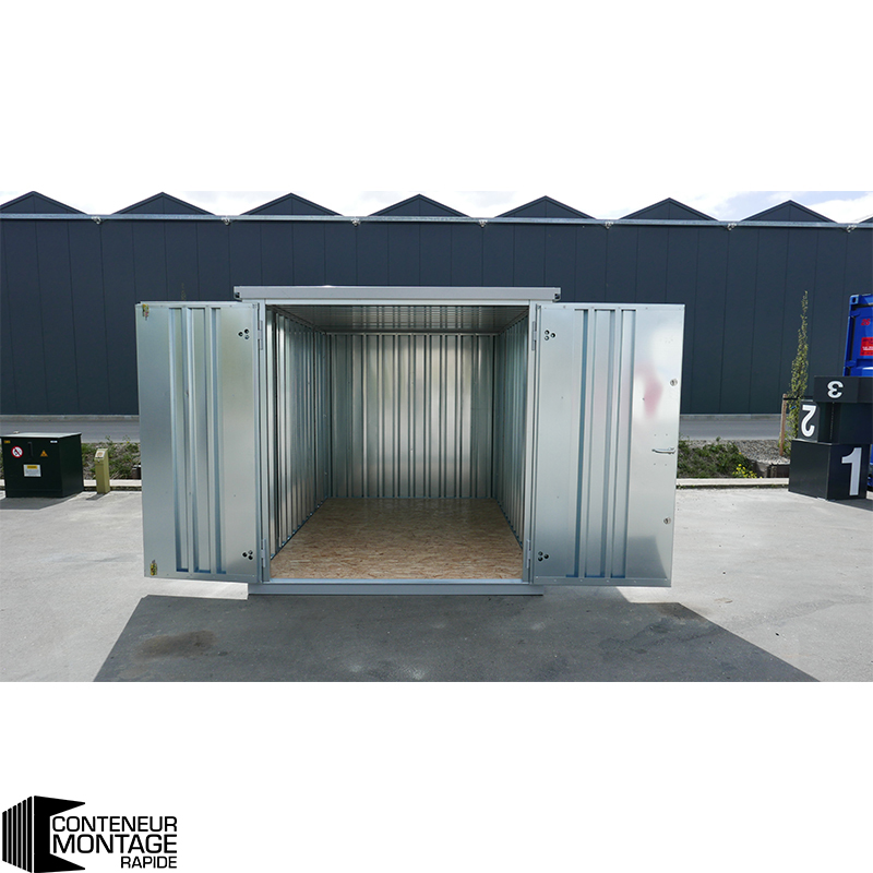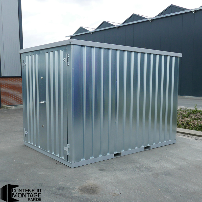 Les tôles de notre conteneur démontable font 70% de l’épaisseur des parois des conteneurs maritimes, légers mais toujours solides. Ils sont faits en acier galvanisé, et sont résistant à la rouille et aux conditions extérieures. En plus de ça, la gouttière est comprise dans la construction du toit, et protège le conteneur des intempéries.